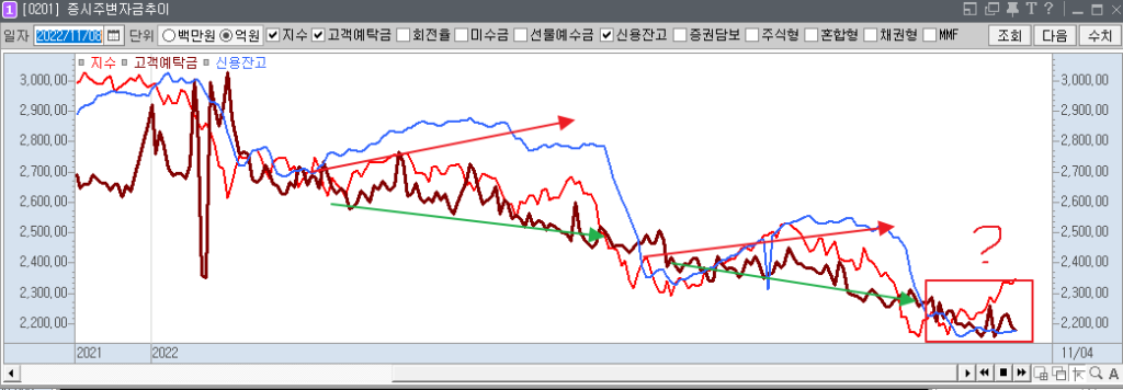 원래 예탁금이 떨어지고 신용잔고가 증가하고 증시가 폭락하고 했는데 이번 반등에는 신용이 따라 붙지 않았고 예탁금이 증가하지 않고 있습니다. 솔직히 저도 이걸 어떻게 받아들여야할지 모르겠습니다. 일단 단기적인 움직임이기 때문에 조금더 주시할 필요는 있다고 생각합니다.