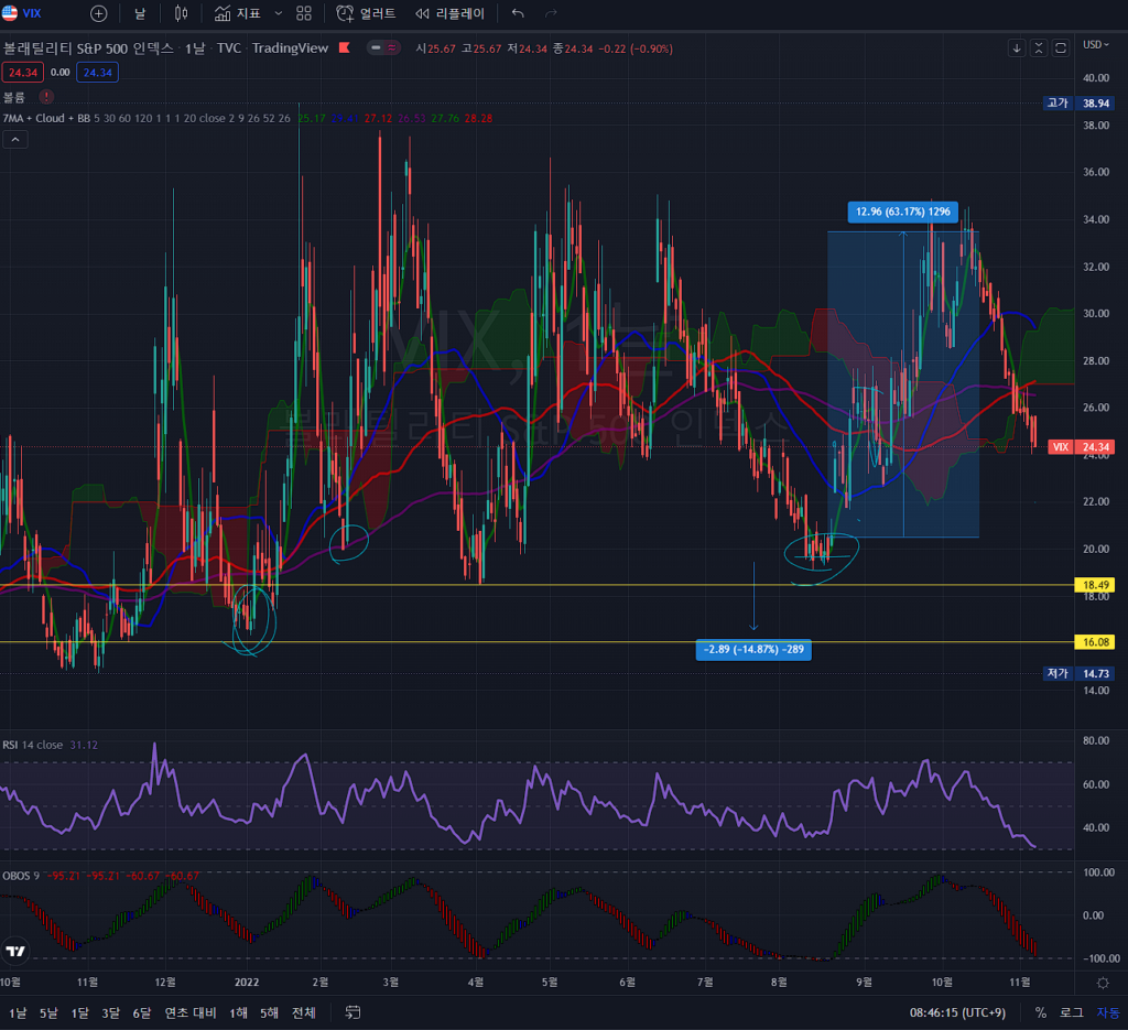 - 변동성 지수들 방향이 아마 오늘 밤에 결정될 듯 함